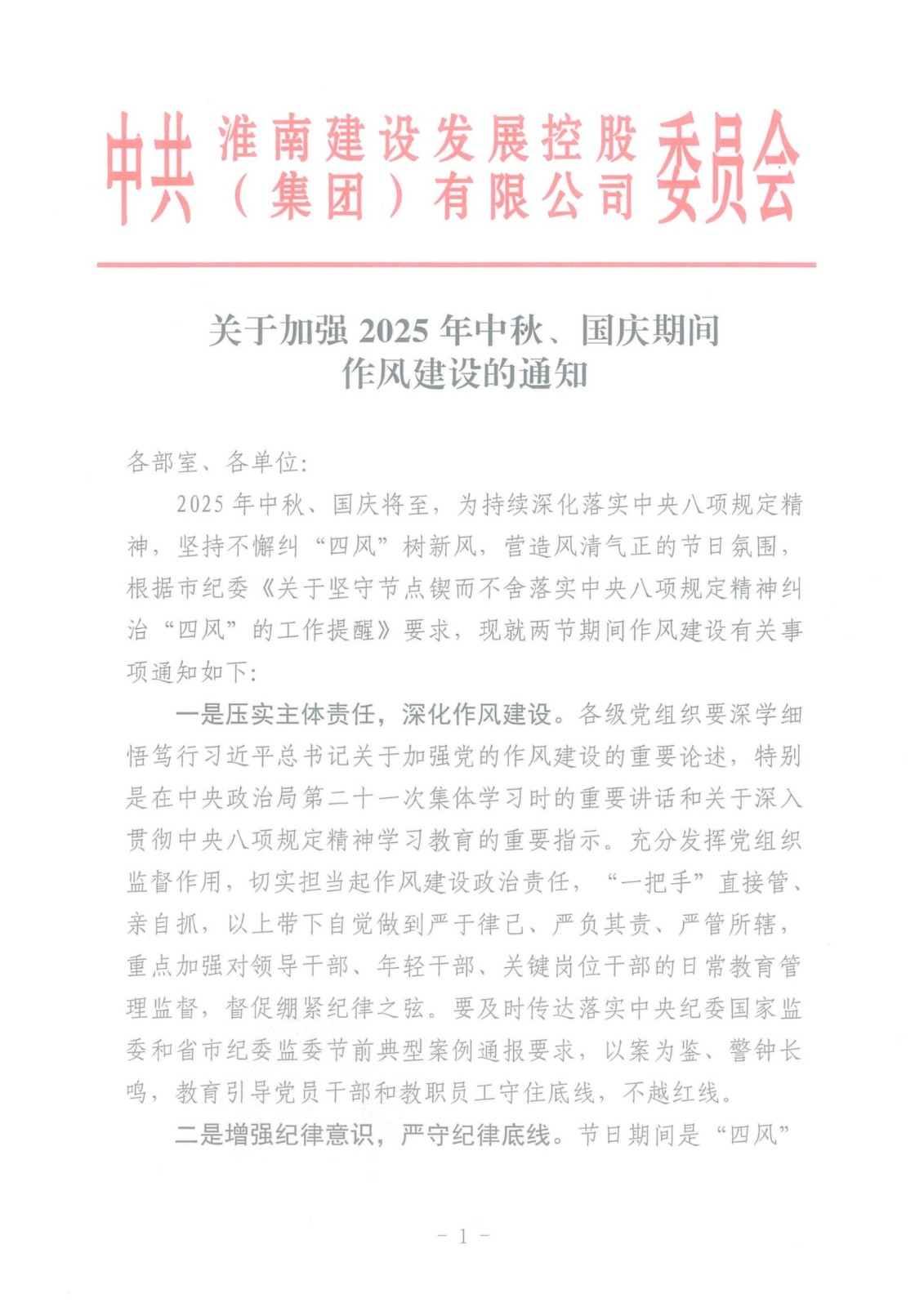 關(guān)于加強(qiáng)2025年中秋、國慶期間 作風(fēng)建設(shè)的通知